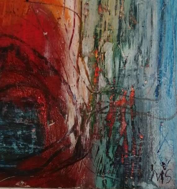 - Oil & mixed media, wood panel