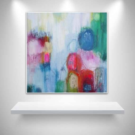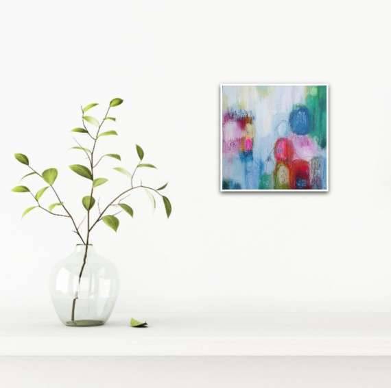 This abstract painting is inspired by my yearning for the summer coast of Cornwall during the COVID-19 lockdowns of 2020 and 2021. Rounded forms bring to mind the solid granite boulders, weathered by the elements over thousands of years, and the soft pinkish tones of the palette bring together sky and land to provide a sense of calm and safety in what have been profoundly challenging times.