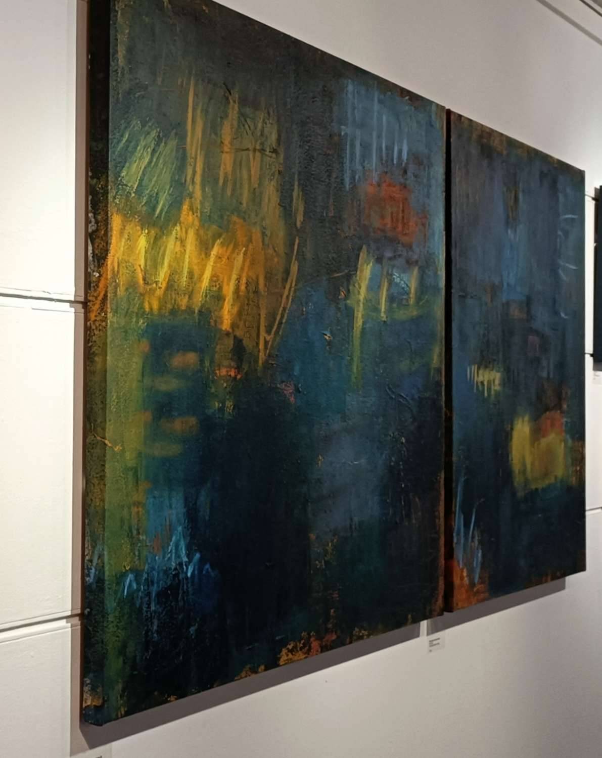 'West Lights the Way Home (II') forms a diptych with 'West Lights the Way Home (I)', and both work well separately as well as together. Some of the images show them together. Each is available for purchase separately.