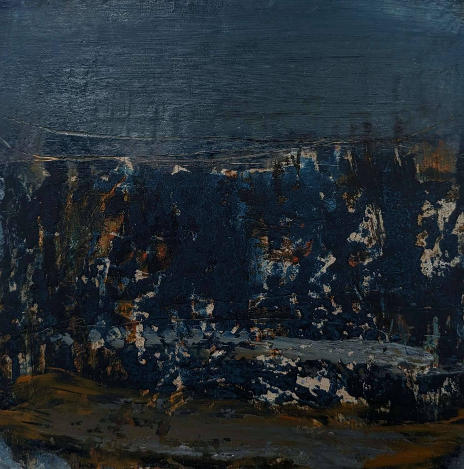 One of a series of works inspired by long walks on the Cornish granite coast between Land's End and Porthcurno. 'Evening Blue' celebrates the textures and colours of the sea over the ancient rocks on a calm evening.