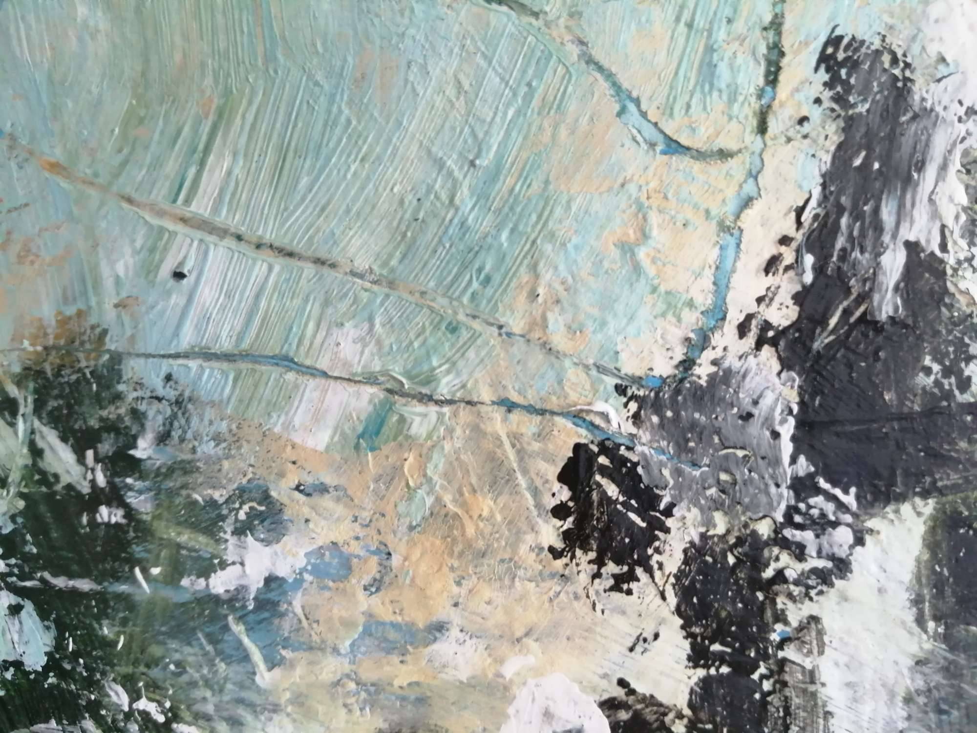 'Sea Dance' is inspired by those days on the Cornish coast when the showers have been rolling in – one minute it looks like it will rain for ever, then so quickly it clears. As the sun comes out, the sky opens up and the light plays on the wet sand and rocks.
