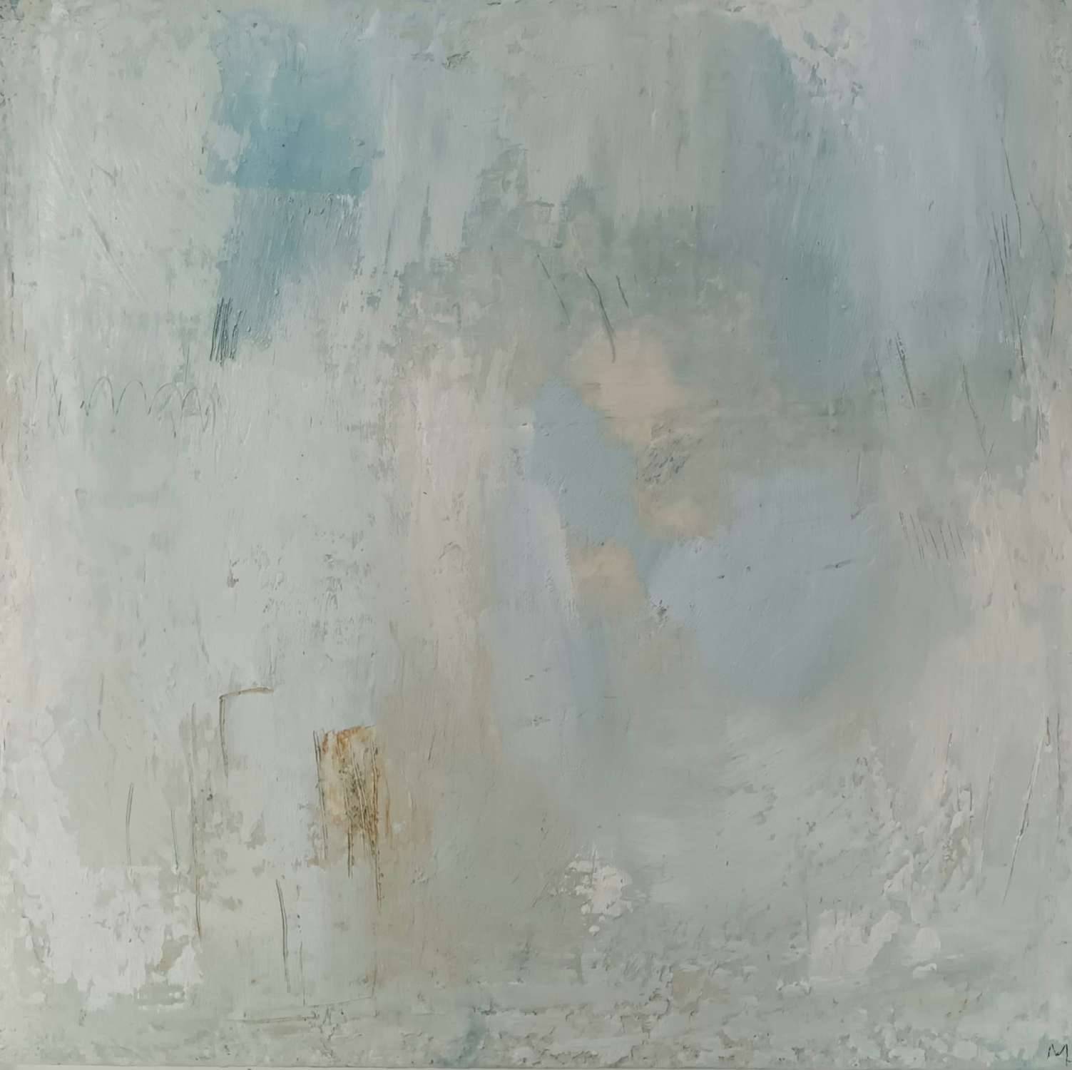 One of a series of four minimal palette abstract paintings inspired by the ancient rocks and landscape of Gwithian, St Ives Bay, Created with oil, cold wax and rock powder.