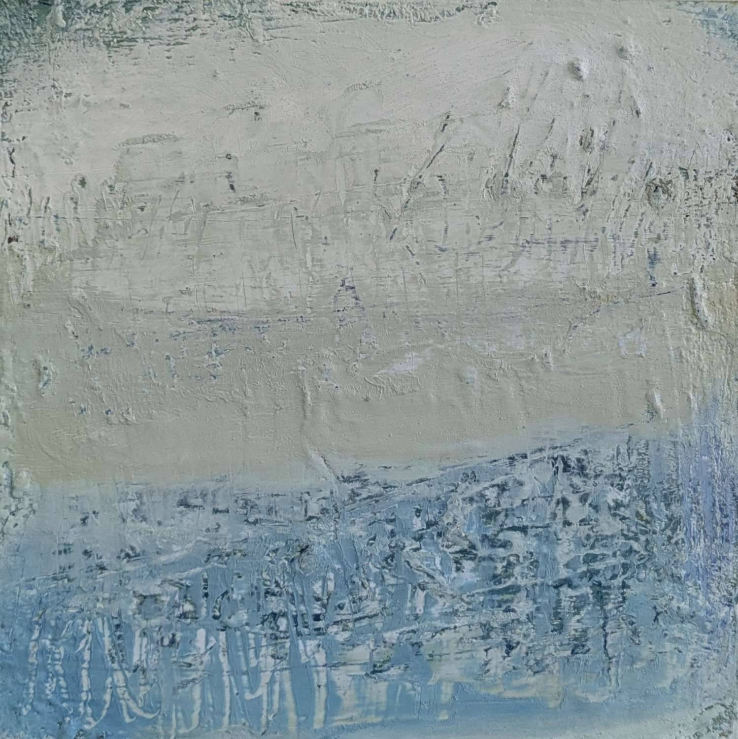 A small abstract painting in a series inspired by walks along the coast path at Gwithian, near Godrevy Lighthouse.  Ancient rocks, folded and fractured and a long sandy beach. A wonderful walk, whatever the weather.