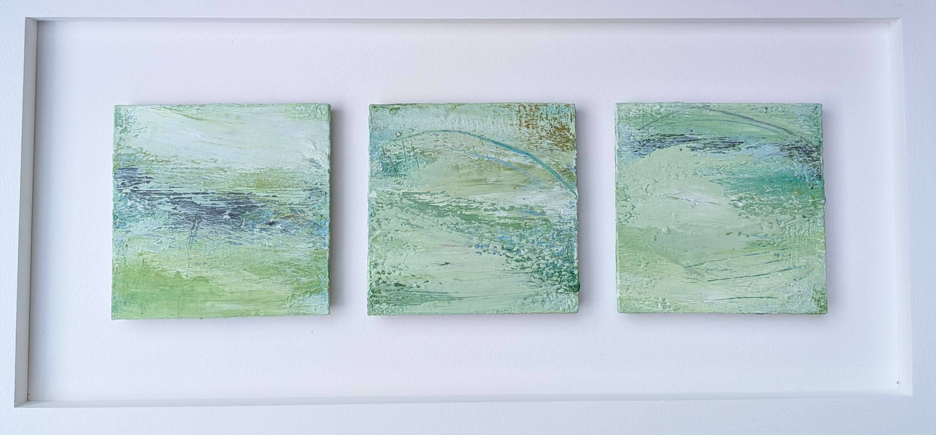 Triptych of small works, capturing the essence of the chalkland landscapes of southern England in Spring,