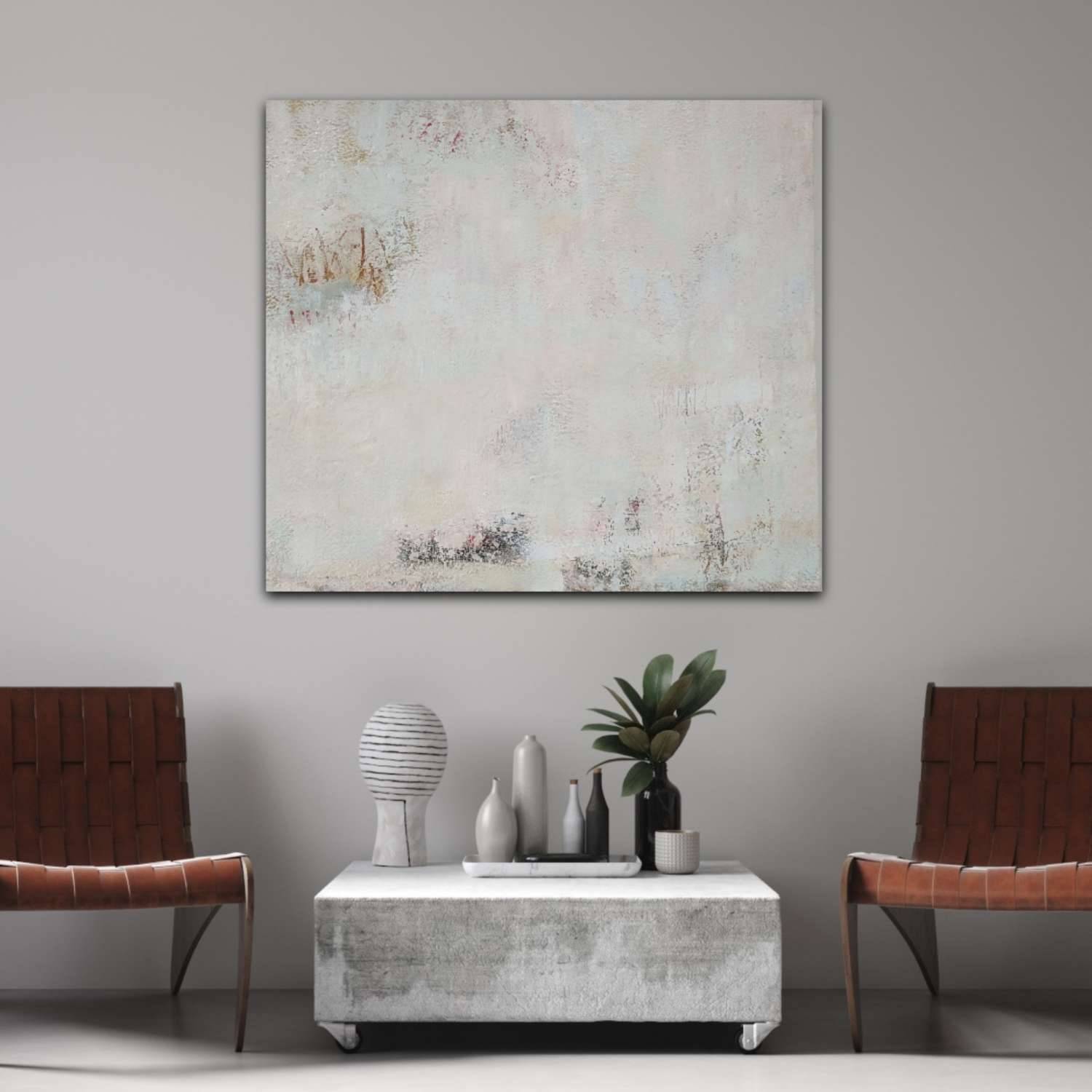 Unframed, canvas on stretcher bars, ready to be hung.