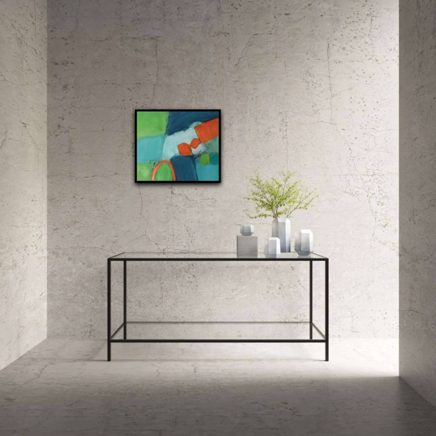 This is the third in a series of four abstract landscapes inspired by the cliff path between the busy harbour town of St Ives and the remote village of Zennor, some six miles to the south west. The painting is a deliberately ambiguous interpretation of the tumbling patchwork of colours of land, sea and sky.