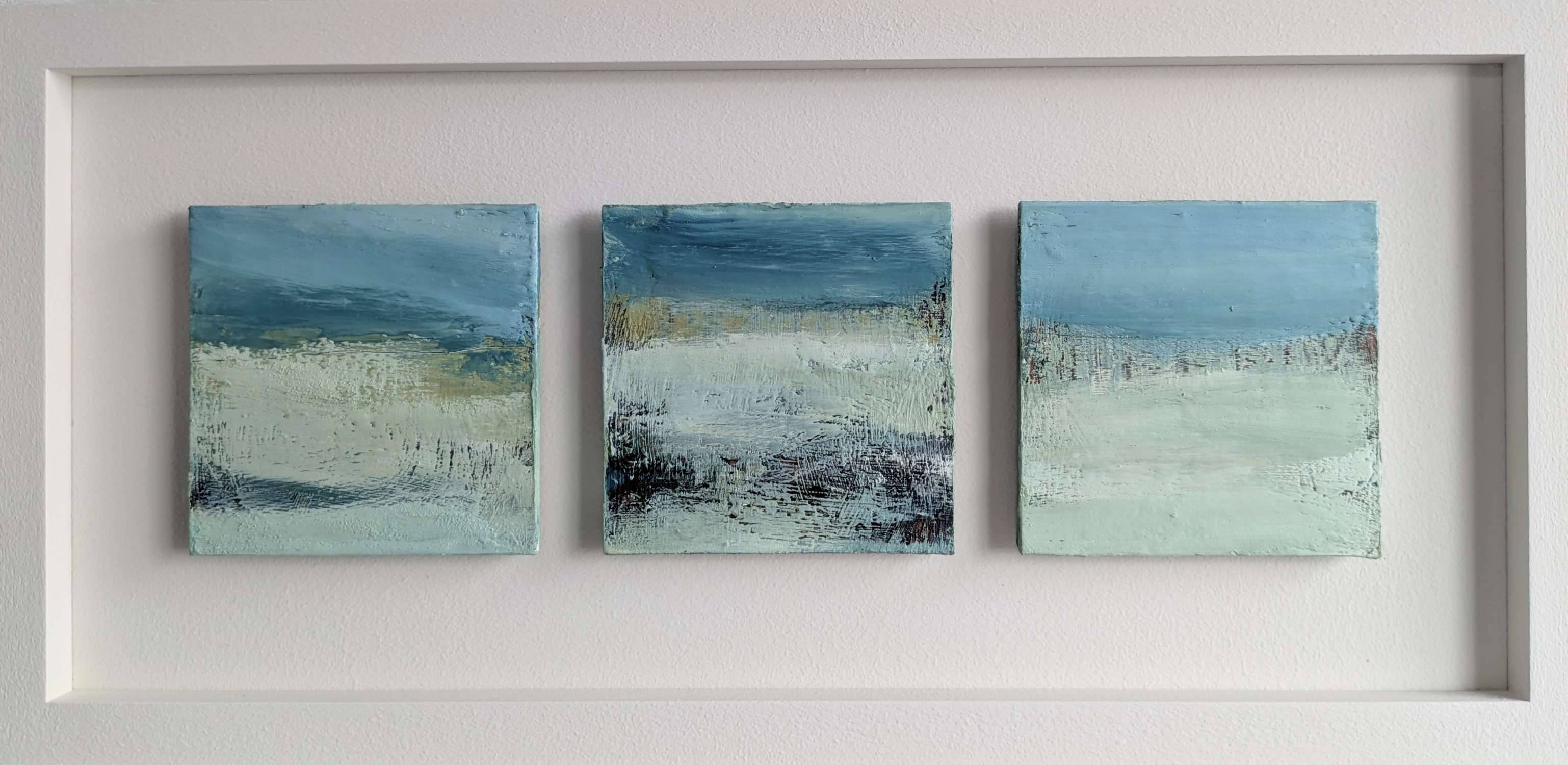 Triptych of small works, capturing walks in ancient wild landscapes and seascapes.