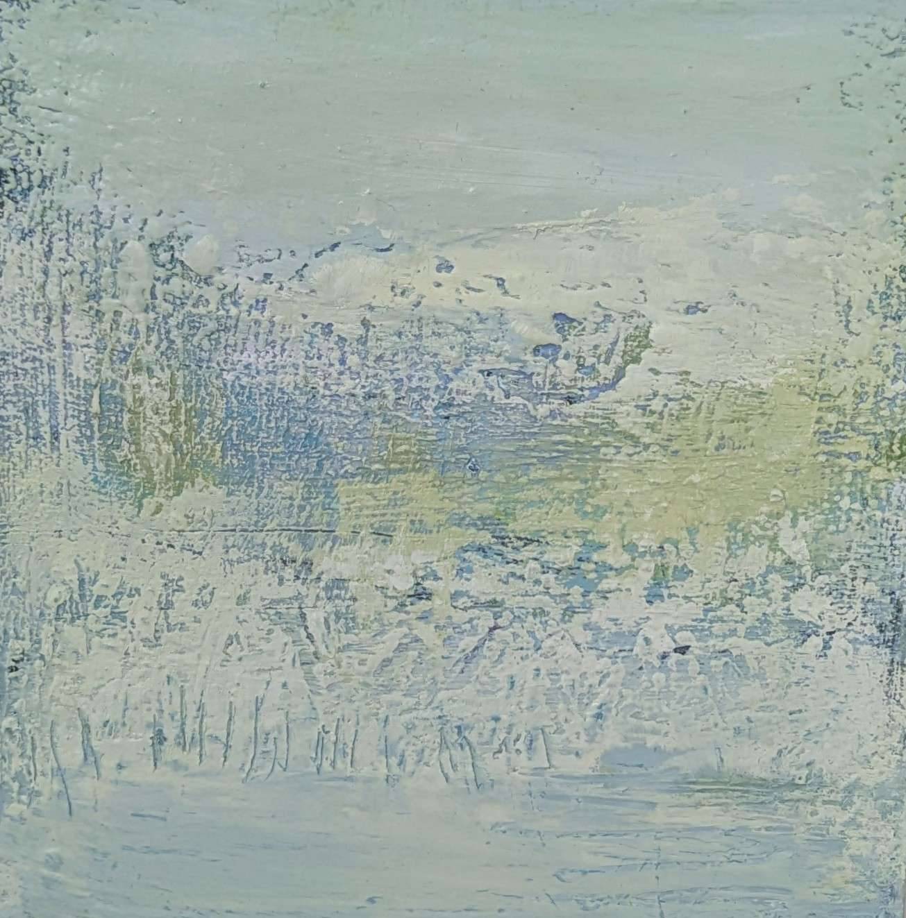 A small abstract painting in a series inspired by coastal glimpses on an Atlantic sea journey.