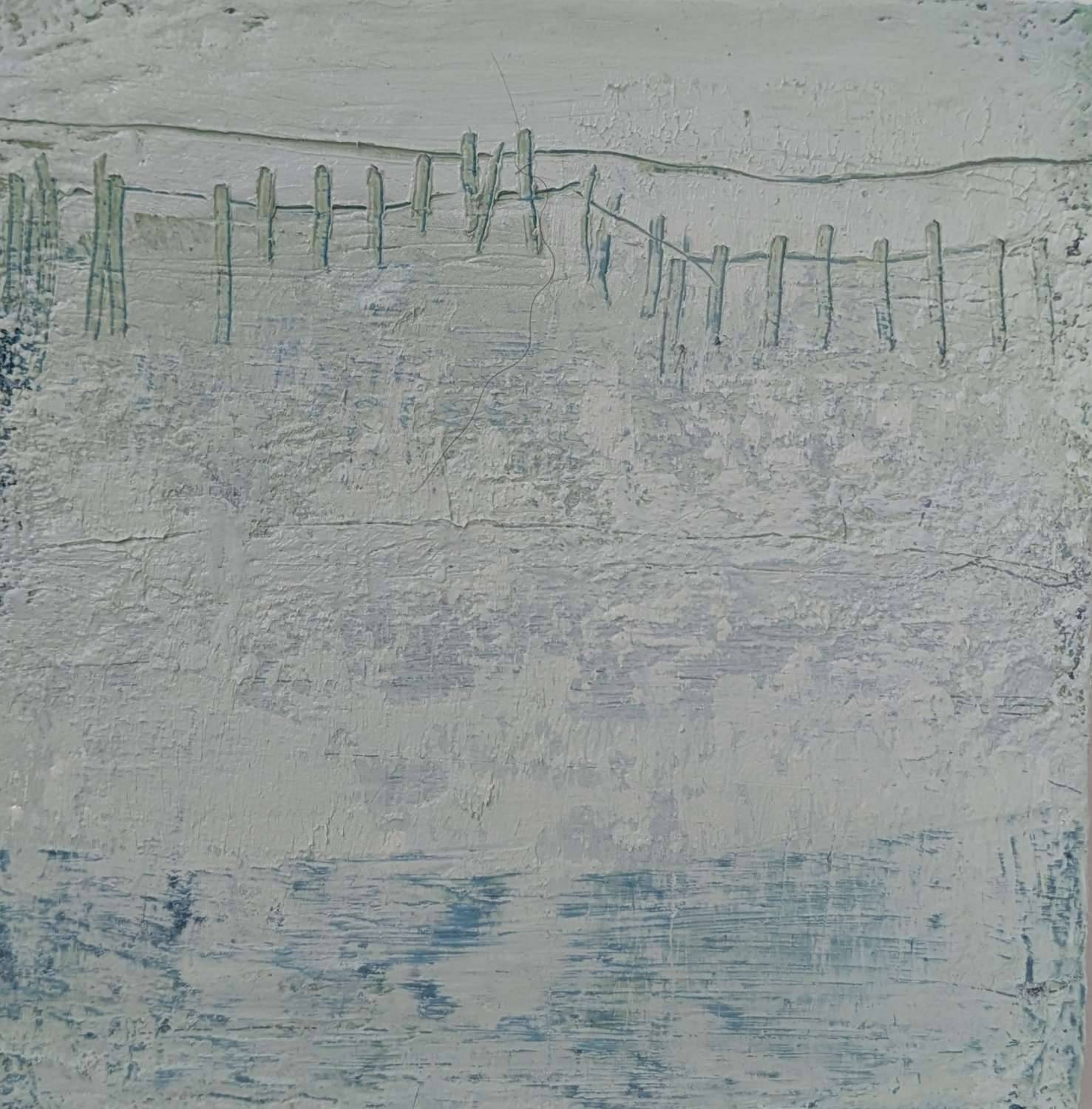 A small abstract painting in a series inspired by coastal glimpses on an Atlantic sea journey.