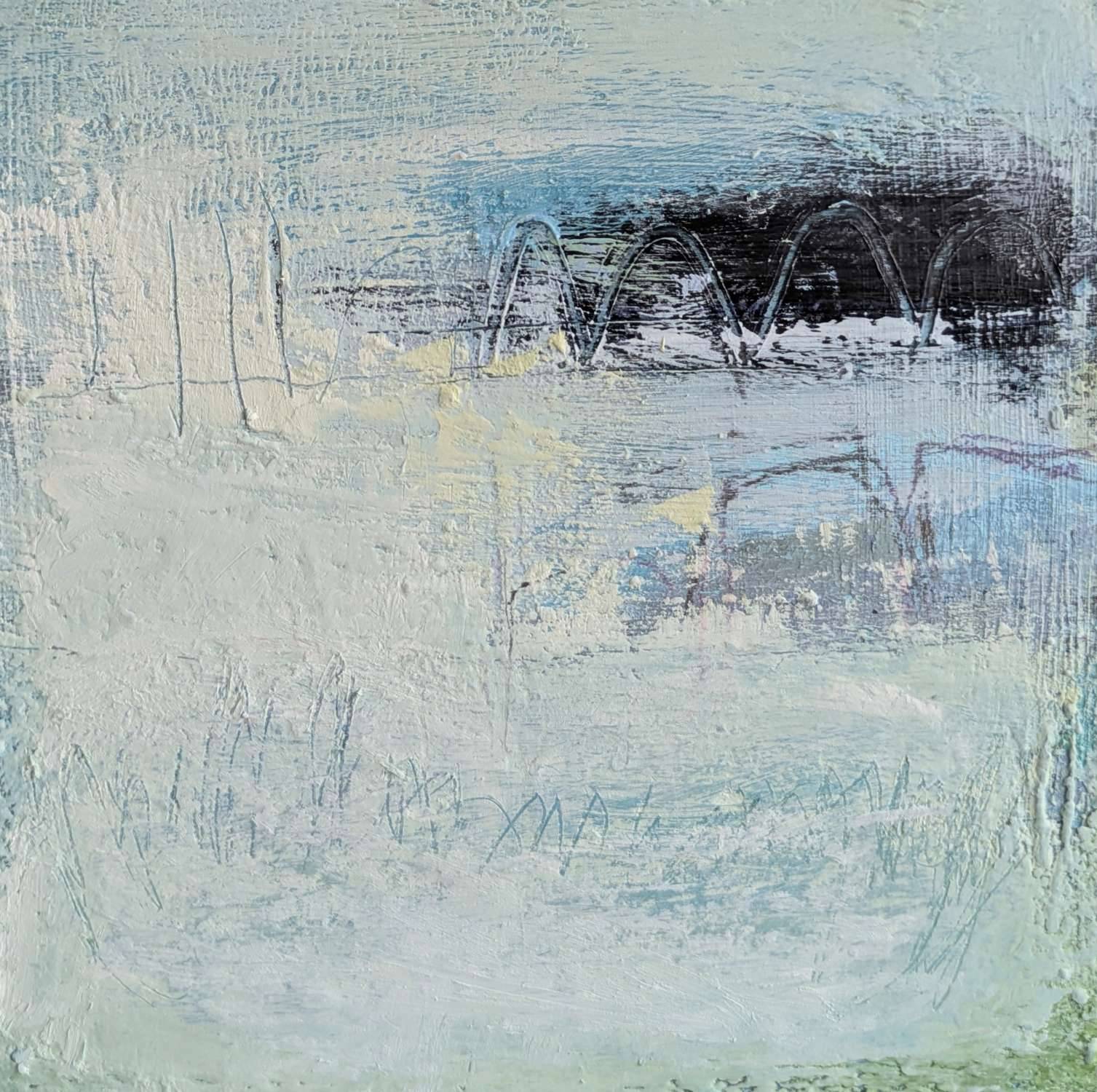 A small abstract painting in a series inspired by coastal glimpses on an Atlantic sea journey.